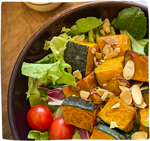 직접 선별한 단호박과 다양한 견과류, 토마토를 마마스 요거트 드레싱과 함께 즐기는 샐러드