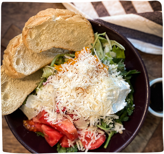홈메이드 방식으로 저온숙성한 쫀득한 텍스쳐의 리코타치즈와 신선한 계절 야채, 견과류에 마마스 발사믹 드레싱을 더한 마마스 시그니처 샐러드